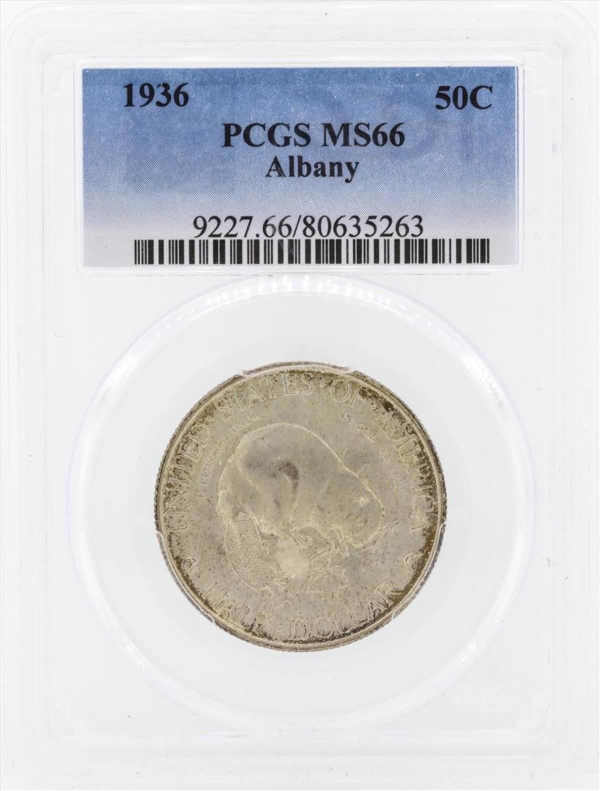One 1936 Albany New York Commemorative Half Dollar Coin PCGS MS66. PCGS Certified.