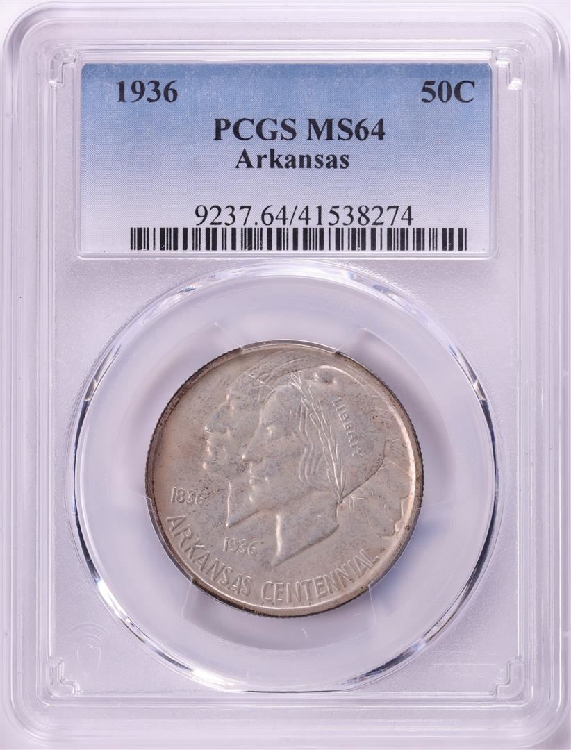 One 1936 Arkansas Centennial Commemorative Half Dollar Coin PCGS MS64. PCGS Graded.