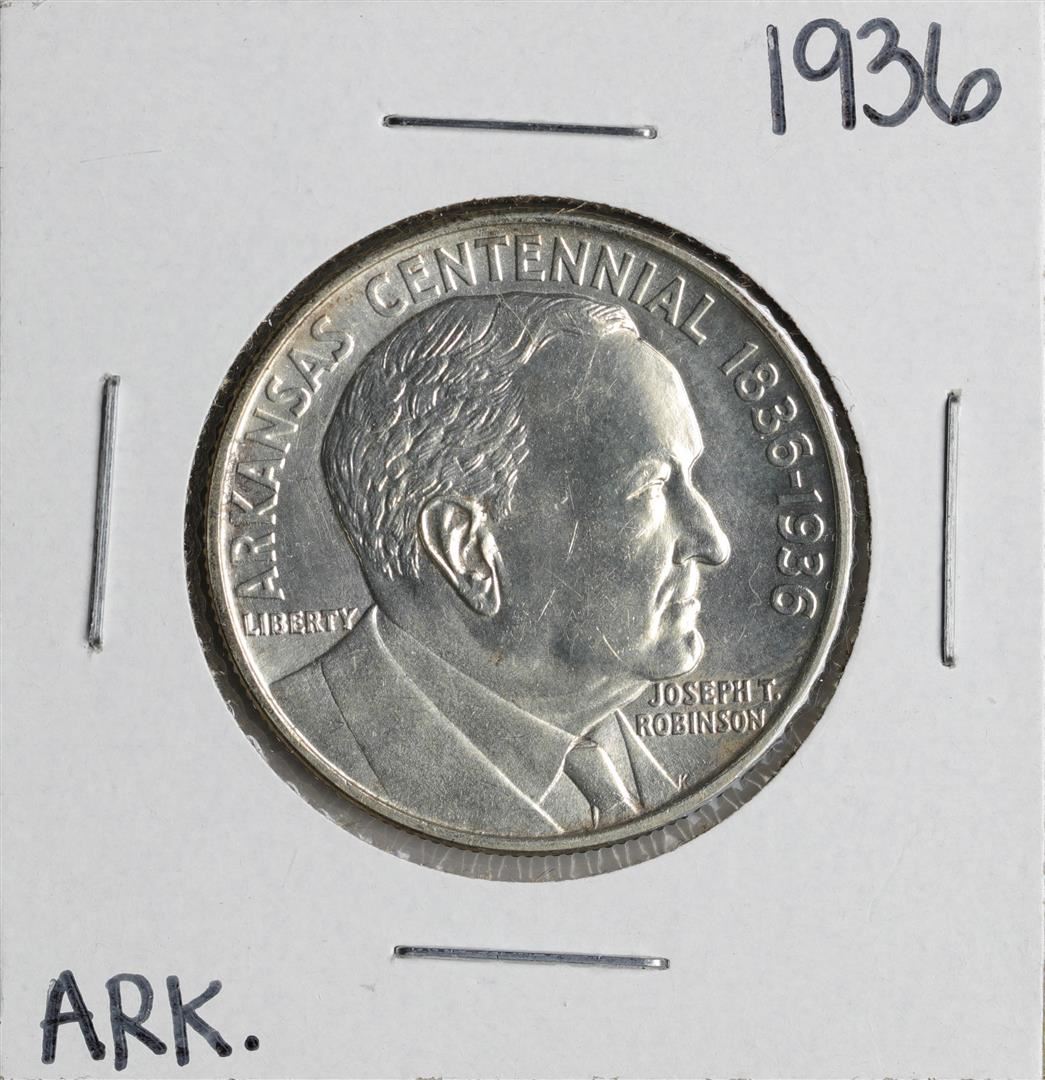One 1936 Arkansas Centennial Commemorative Half Dollar Coin.