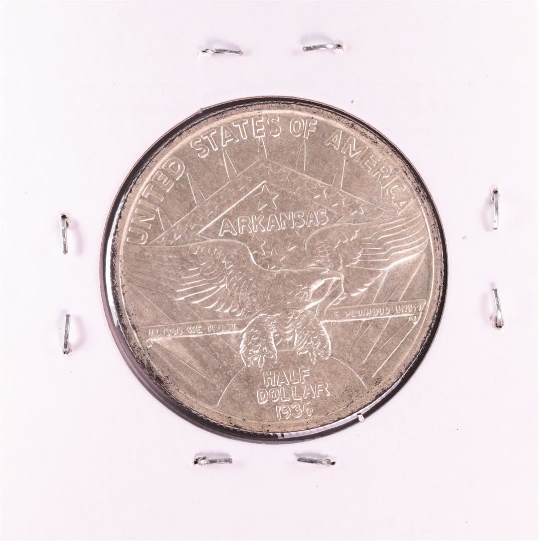 One 1936 Arkansas Centennial Commemorative Half Dollar Coin.