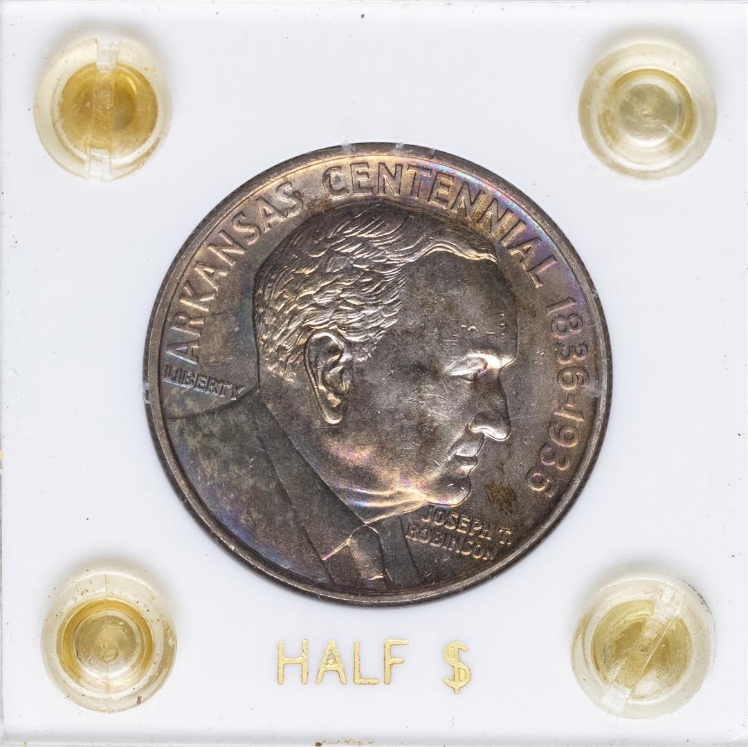 One 1936 Arkansas Centennial Robinson Commemorative Half Dollar Coin Nice Toning.