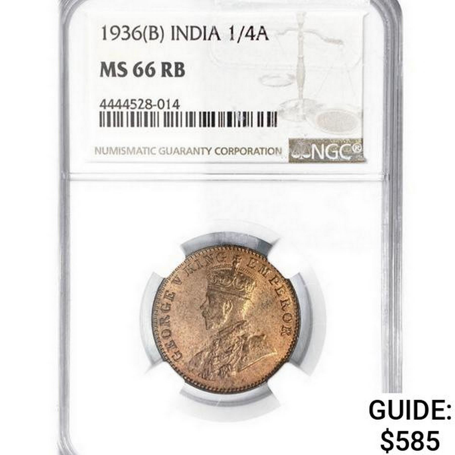 1936[B] 1/4 Anna India Bronze NGC MS66 RB