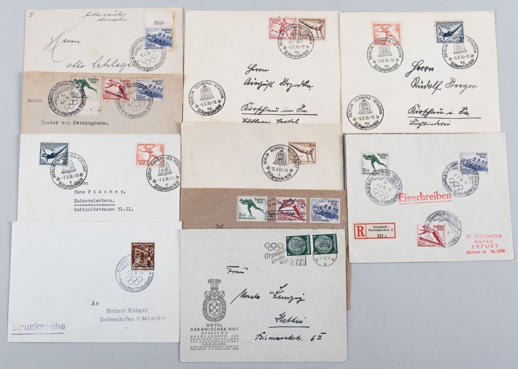 Lot of ten German 1936 Olympics Games covers depicting various sport stamps and cancelations of Olympics.