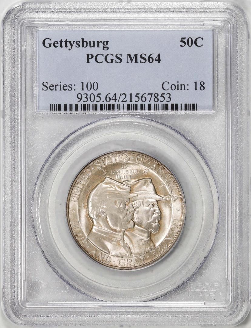 One 1936 Battle of Gettysburg Anniversary Commemorative Half Dollar Coin PCGS MS64. PCGS Graded.
