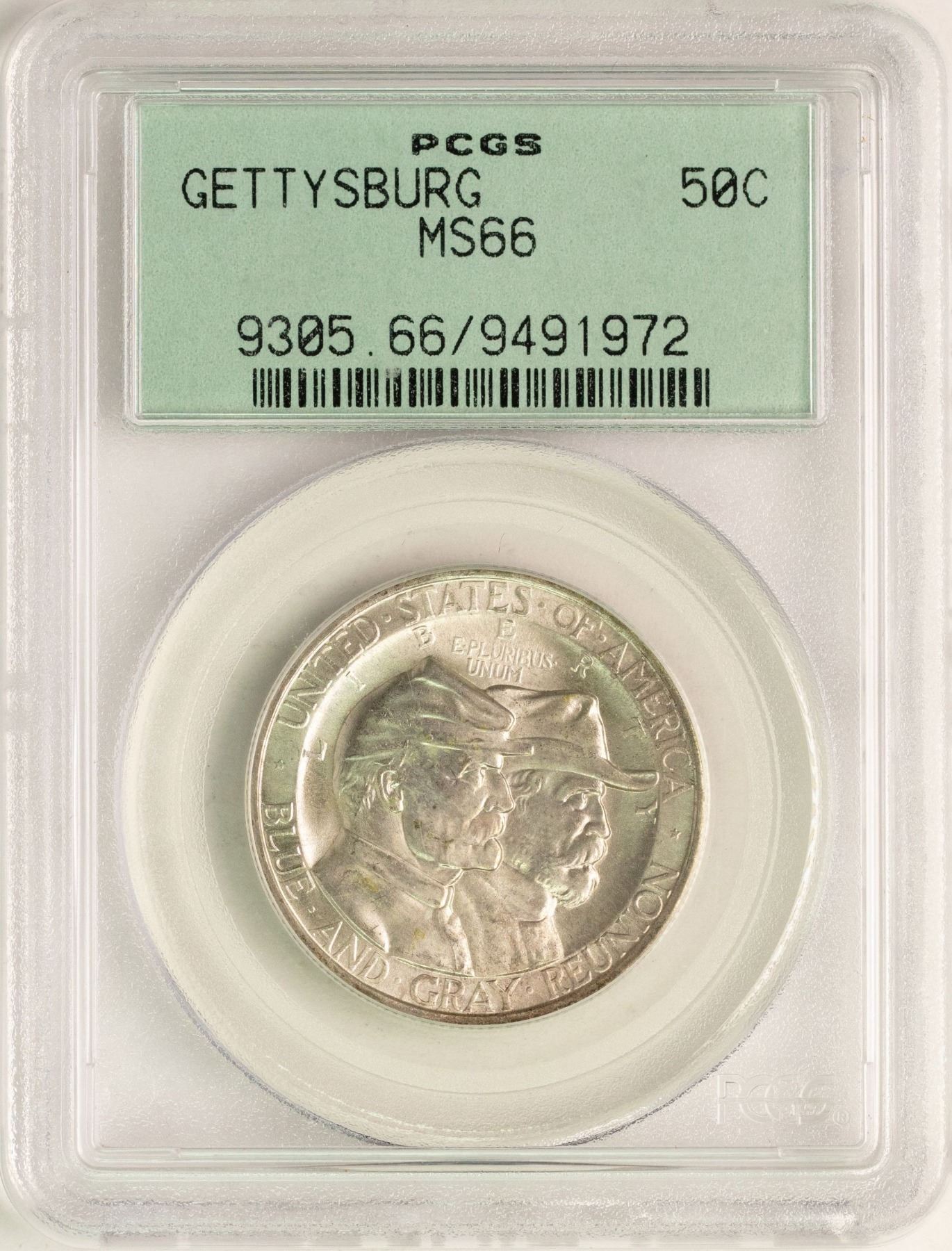 One 1936 Battle of Gettysburg Anniversary Commemorative Half Dollar Coin PCGS MS66 OGH.