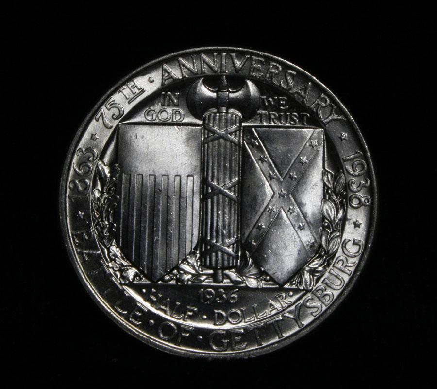 A Great Commemorative with a storied history minted for the 75th Anniversary of the Battle of Gettysburg. The is example is all Original and has nice luster for the issue and a decent strike. Coin World's Coin Values lists ms65 at $700 and The Wholesale Greysheet lists ms65 at $725. A very desirable issue with Wholesale listed higher than Retail. Estimated Value $750