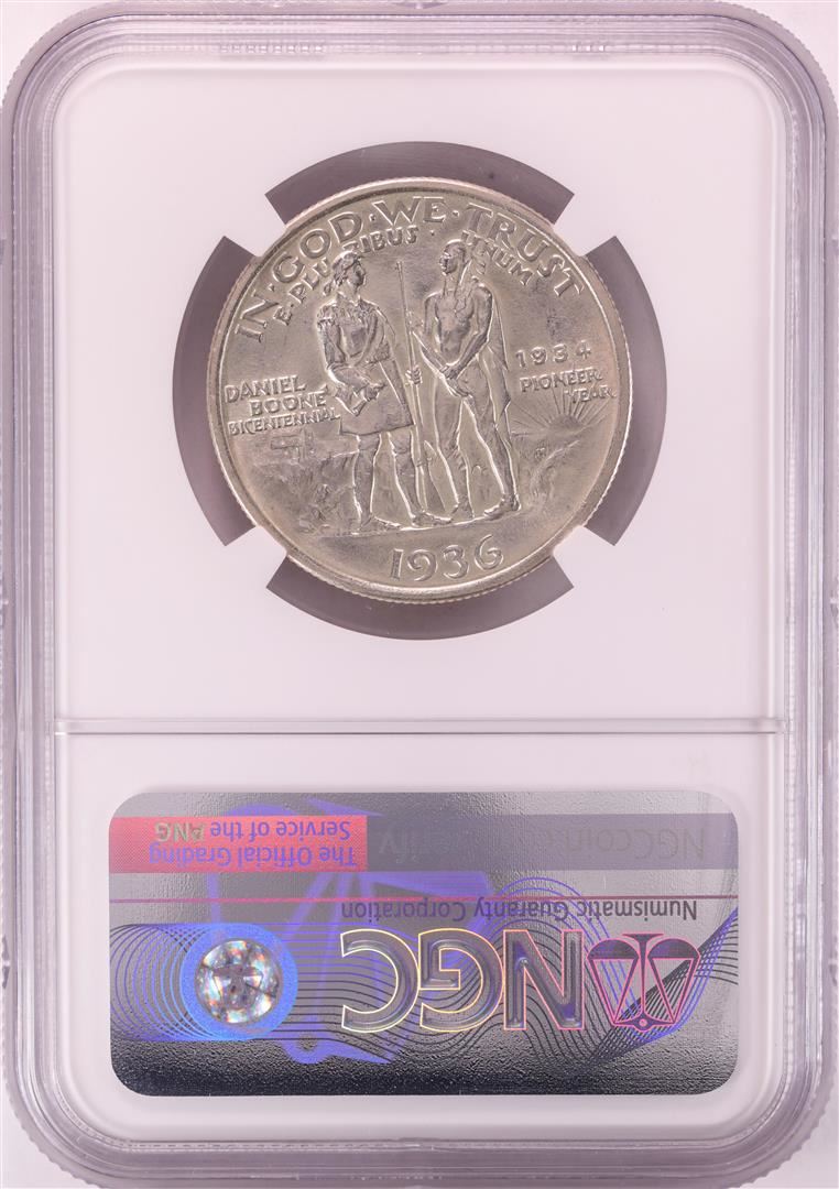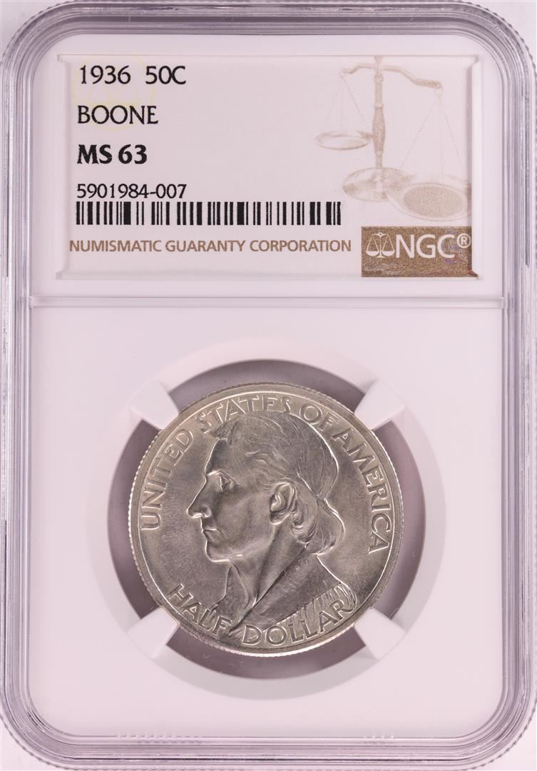 One 1936 Boone Commemorative Half Dollar Coin NGC MS63. NGC Certified.