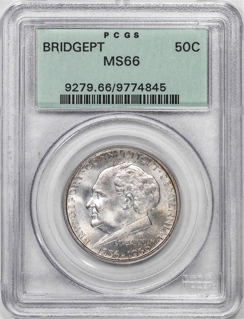 1936 Bridgeport Centennial Commemorative Half Dollar Coin PCGS MS66 Old Green Holder