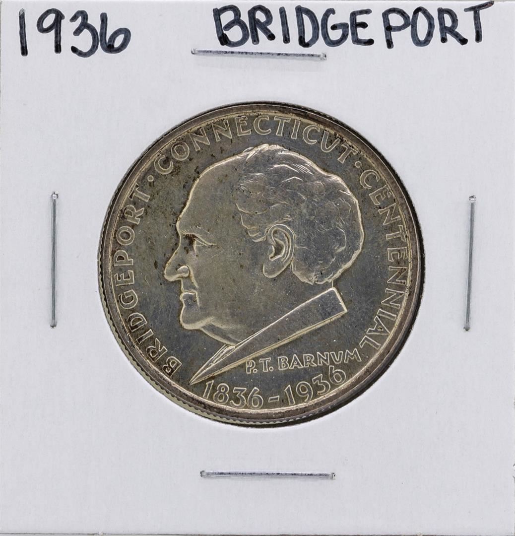 One 1936 Bridgeport Centennial Commemorative Half Dollar Coin.