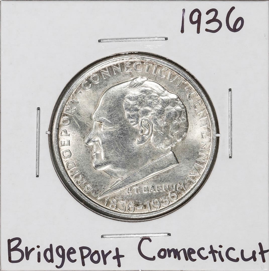 One 1936 Bridgeport Centennial Commemorative Half Dollar Coin.