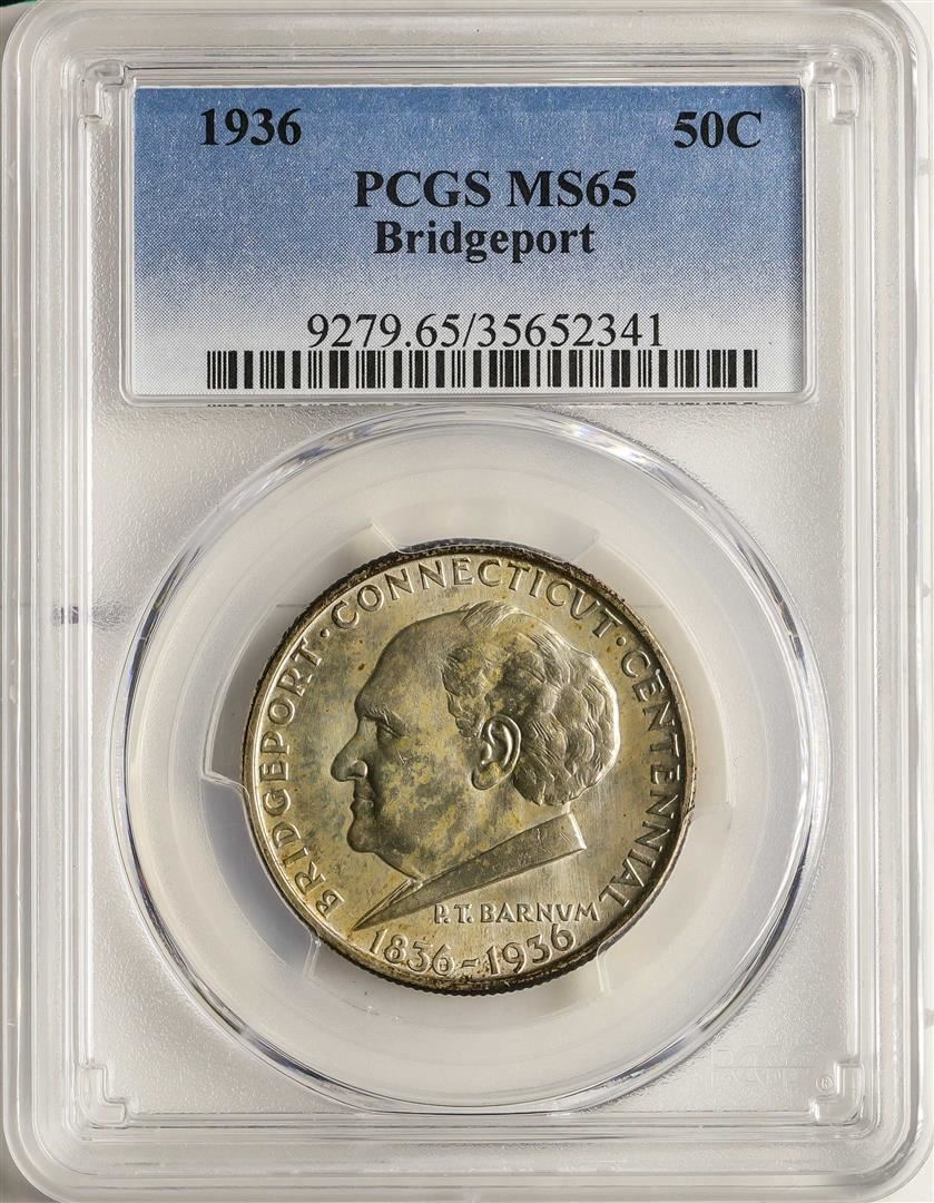 One 1936 Bridgeport Commemorative Half Dollar Coin PCGS MS65. PCGS Graded.