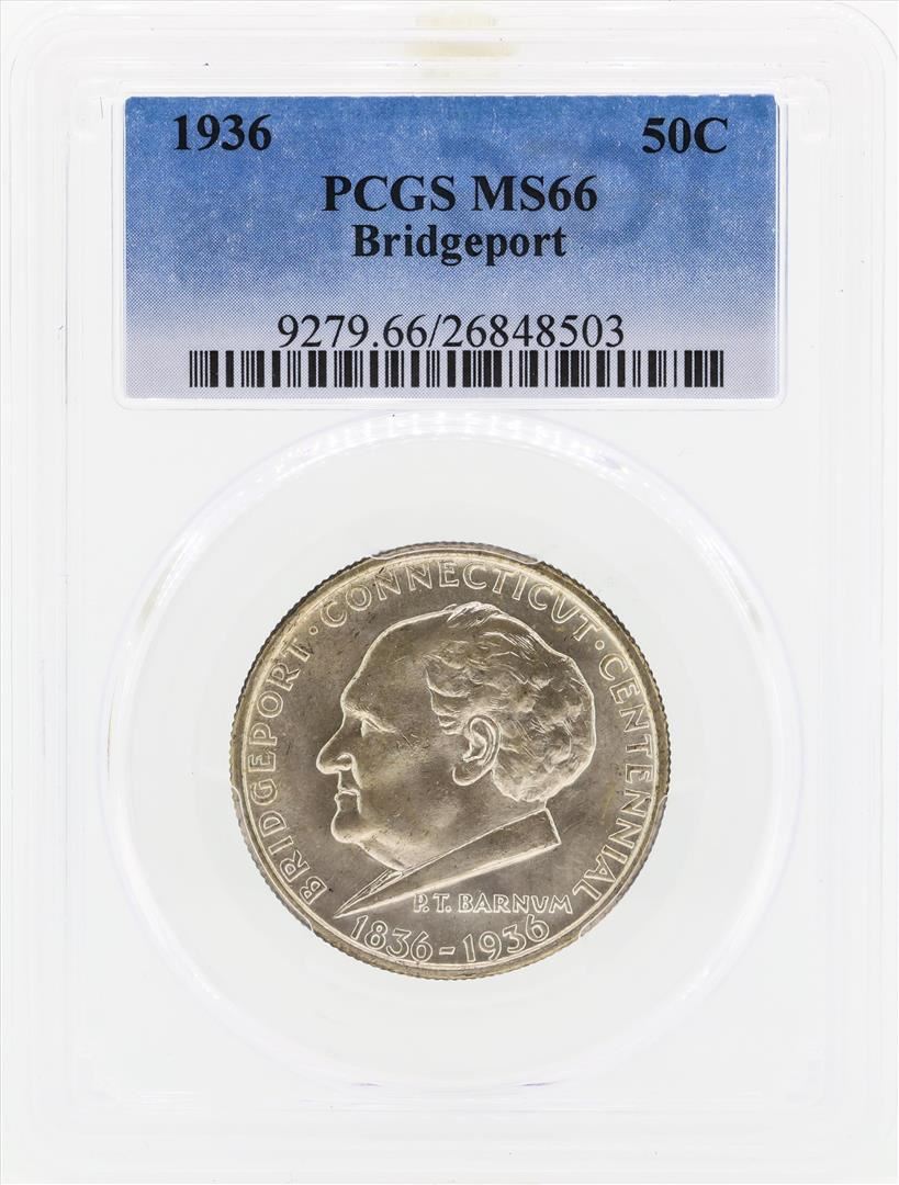 One 1936 Bridgeport Commemorative Half Dollar Coin PCGS MS66. PCGS Graded.