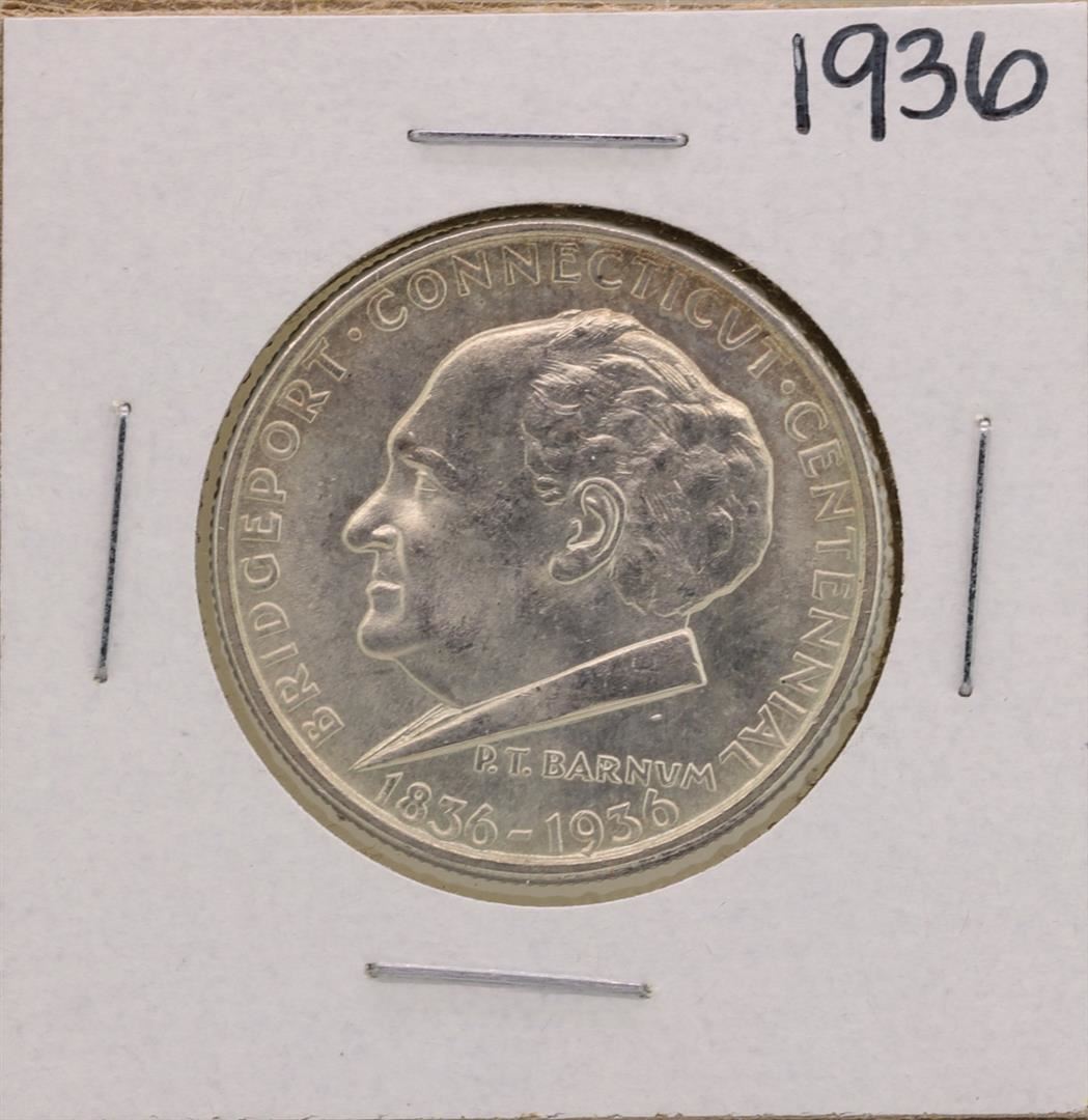 One 1936 Bridgeport Connecticut Centennial Commemorative Half Dollar Coin.