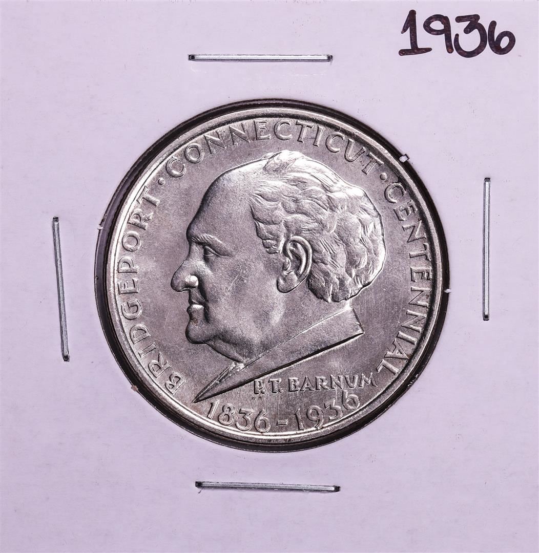 One 1936 Bridgeport Connecticut Centennial Commemorative Half Dollar Coin.