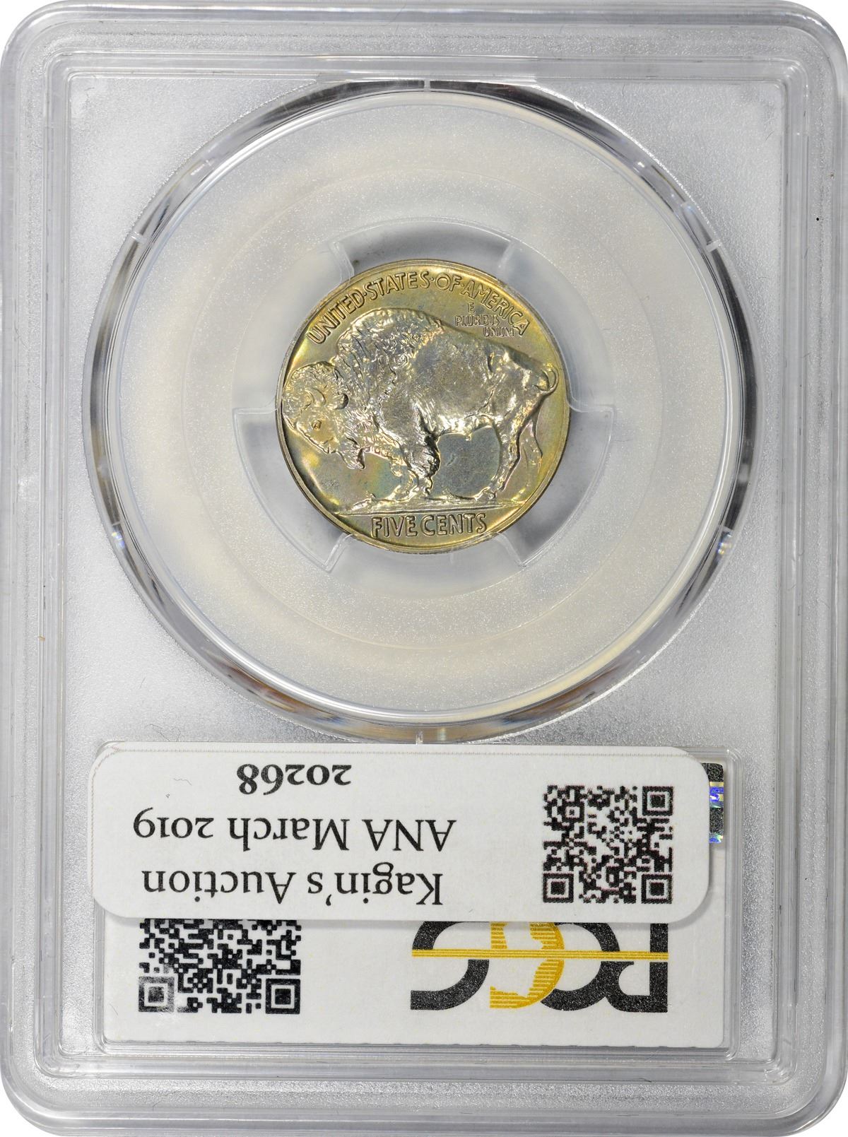 The reflective surfaces of this sparkling gem spring to colorful life in a bold light source. Splashes of gold, crimson, orange, and blue iridescence adorn both sides of this impressive Proof from the first year of such coinage since 1916. One of 4,420 Proofs of the date struck, a figure about evenly split between the Brilliant style offered here and a Satin style. Undeniably choice.