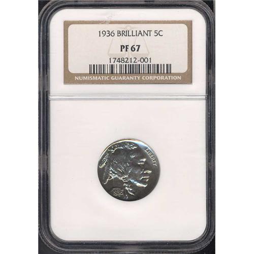 Mintage for this date is 4420 proofs. This a Type Two Brilliant Proof. A fully struck gem with a hairline on the buffalo's belly. Bids $3260 and trends $4000 in PF65.