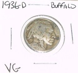 1936 Buffalo Nickel *FINE-12 GRADE*!! ***Coin, Currency & All Items Listed in this auction - Grades, Conditions and Values are not Safe Deposit Coins LLC Responsibilty. Grades, Condition and Values are determined by Consigner(s) & Buyers