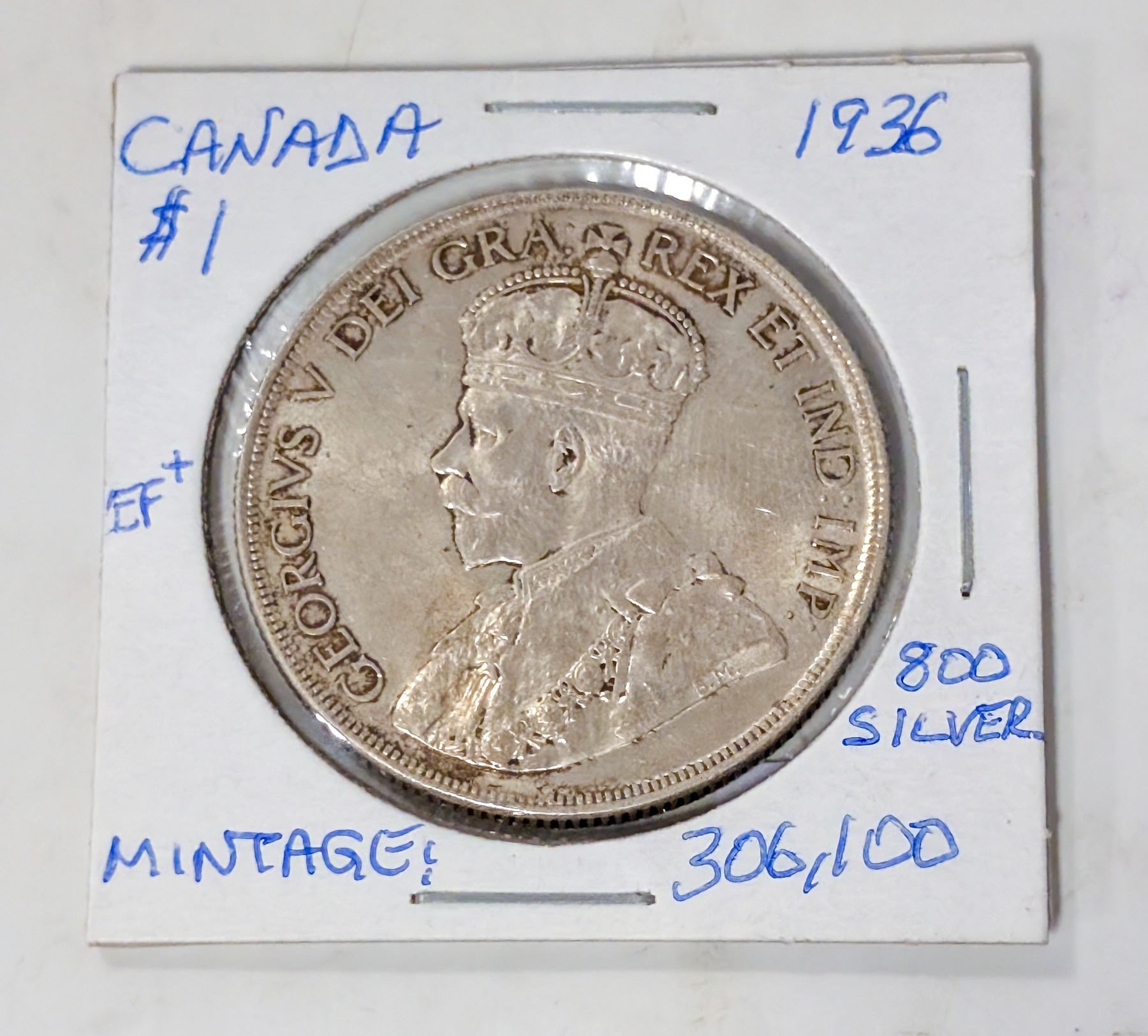 1936 CANADA $1 SILVER COIN 800 SILVER