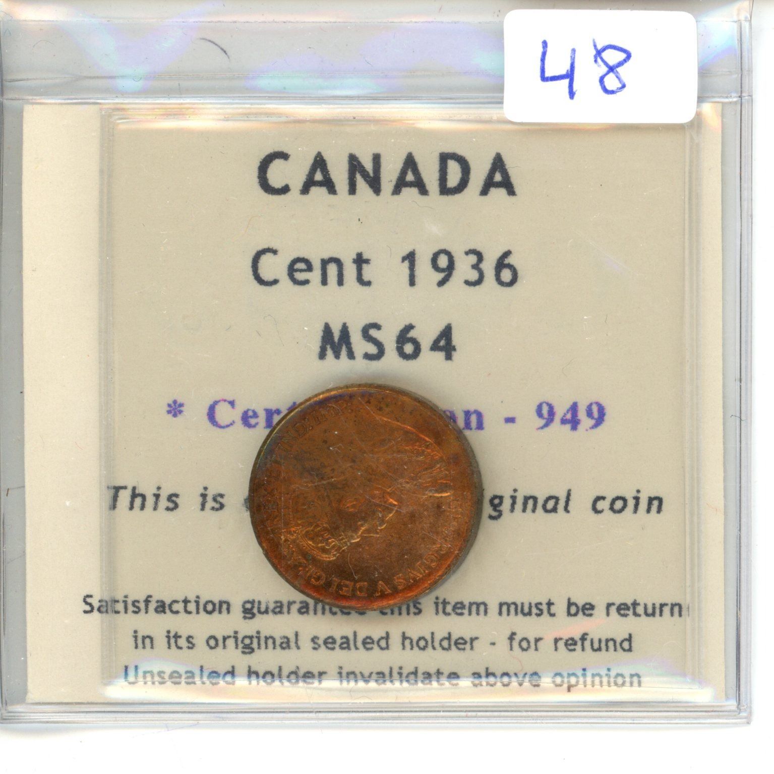 1936 Canada 1¢; MS 64 (Mon Expert # 949)
