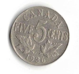 1936 Canadian Five Cent Piece