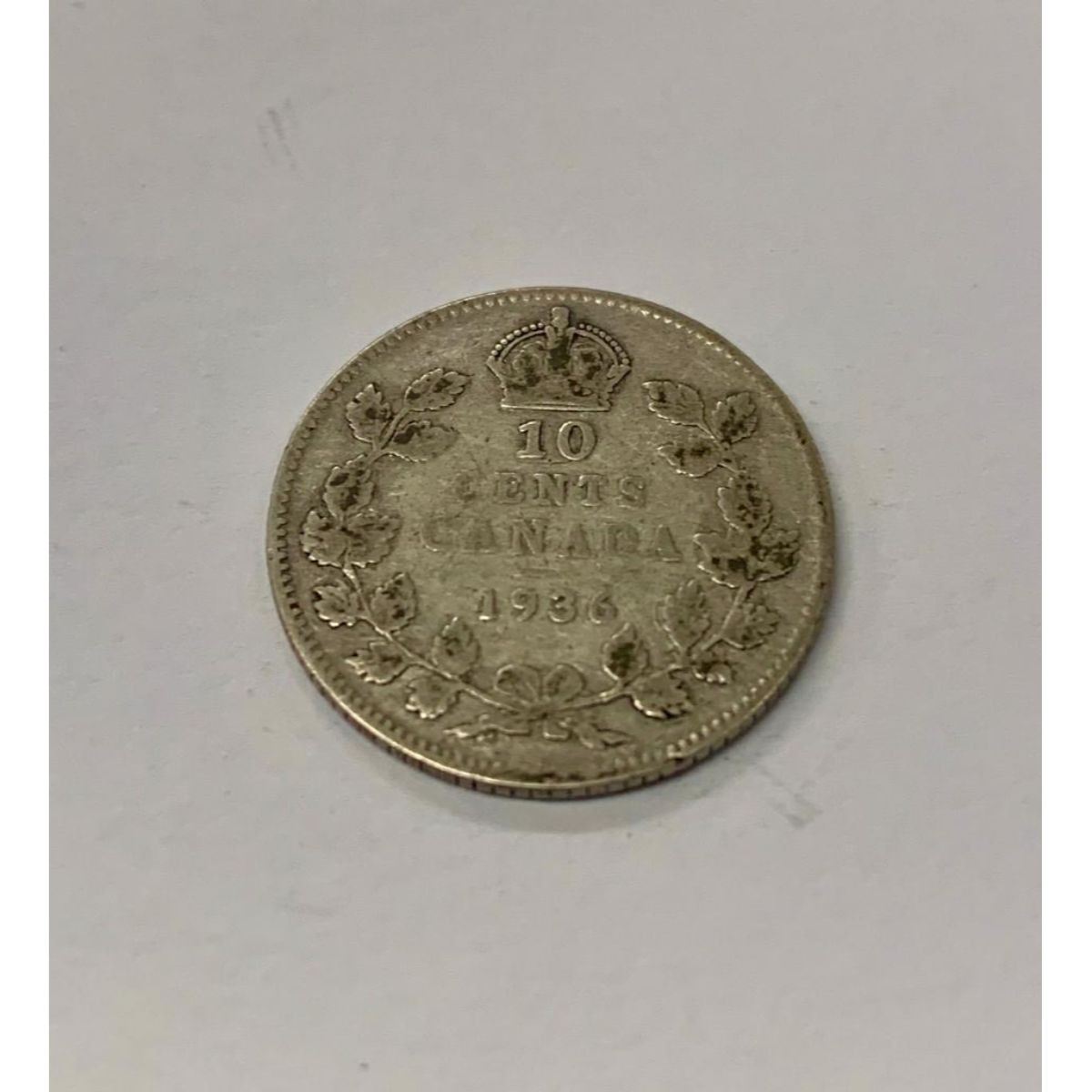 Obverse The portrait in left profile of George V is surrounded with the inscription "GEORGIVS V DEI GRA: REX ET IND:IMP" (George V, King and Emperor of India by the grace of God) Lettering: GEORGIVS V DEI GRA: REX ET IND:IMP: Reverse The facial value, accompanied with the inscription "CANADA", is surrounded with two maple boughs and a crown Lettering: 10 CENTS CANADA 1931 Features TypeStandard circulation coin Years1920-1936 Value10 Cents (0.10 CAD) MetalSilver (.8000) Weight2.33 g Diameter18.034 mm ShapeRound OrientationMedal alignment ↑↑