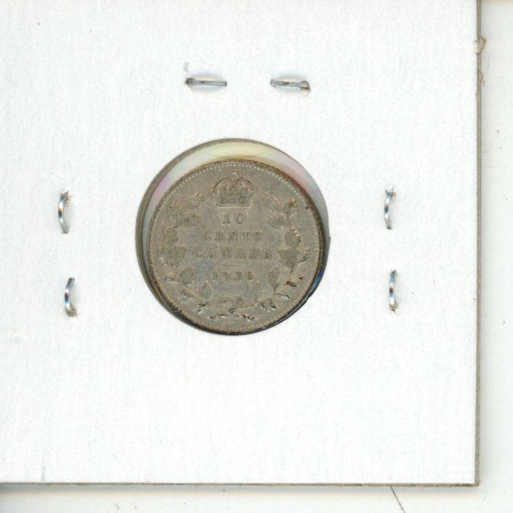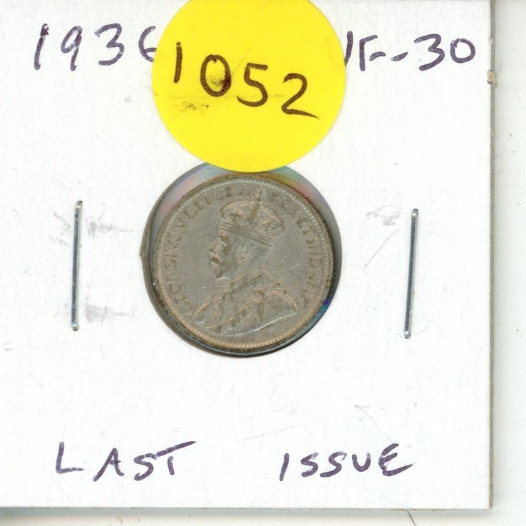 1936 Canadian Silver 10 Cents. Last issue for King George V. VF-30.