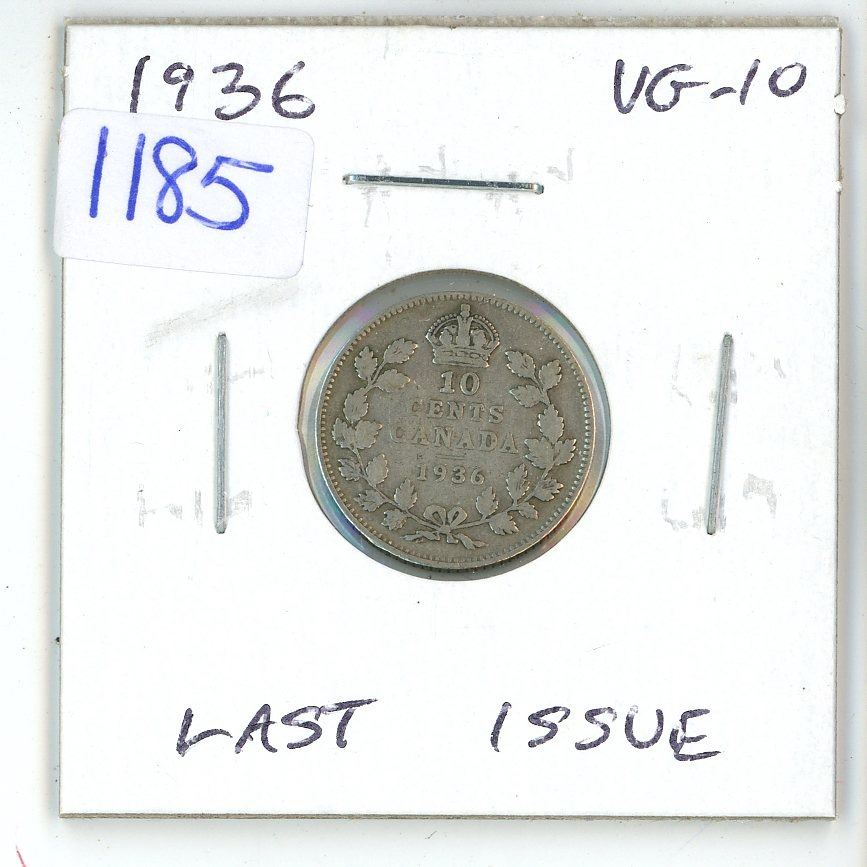 1936 Canadian Silver 10 Cents. The last issue of King George V. VG-10.