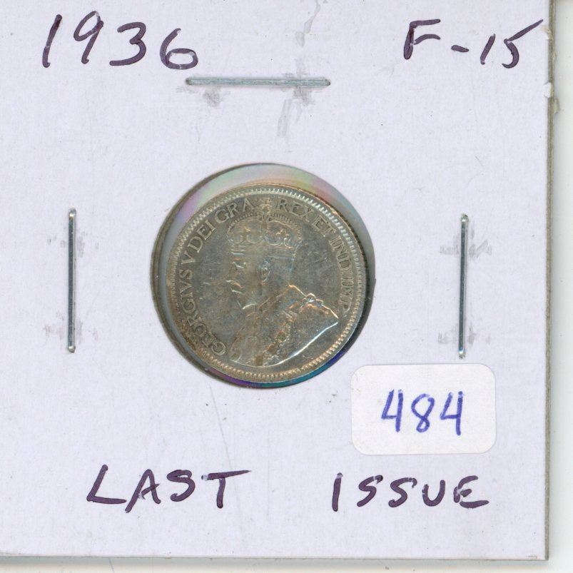 1936 Canadian Silver 10 cents. Last issue of King George V. F-15.