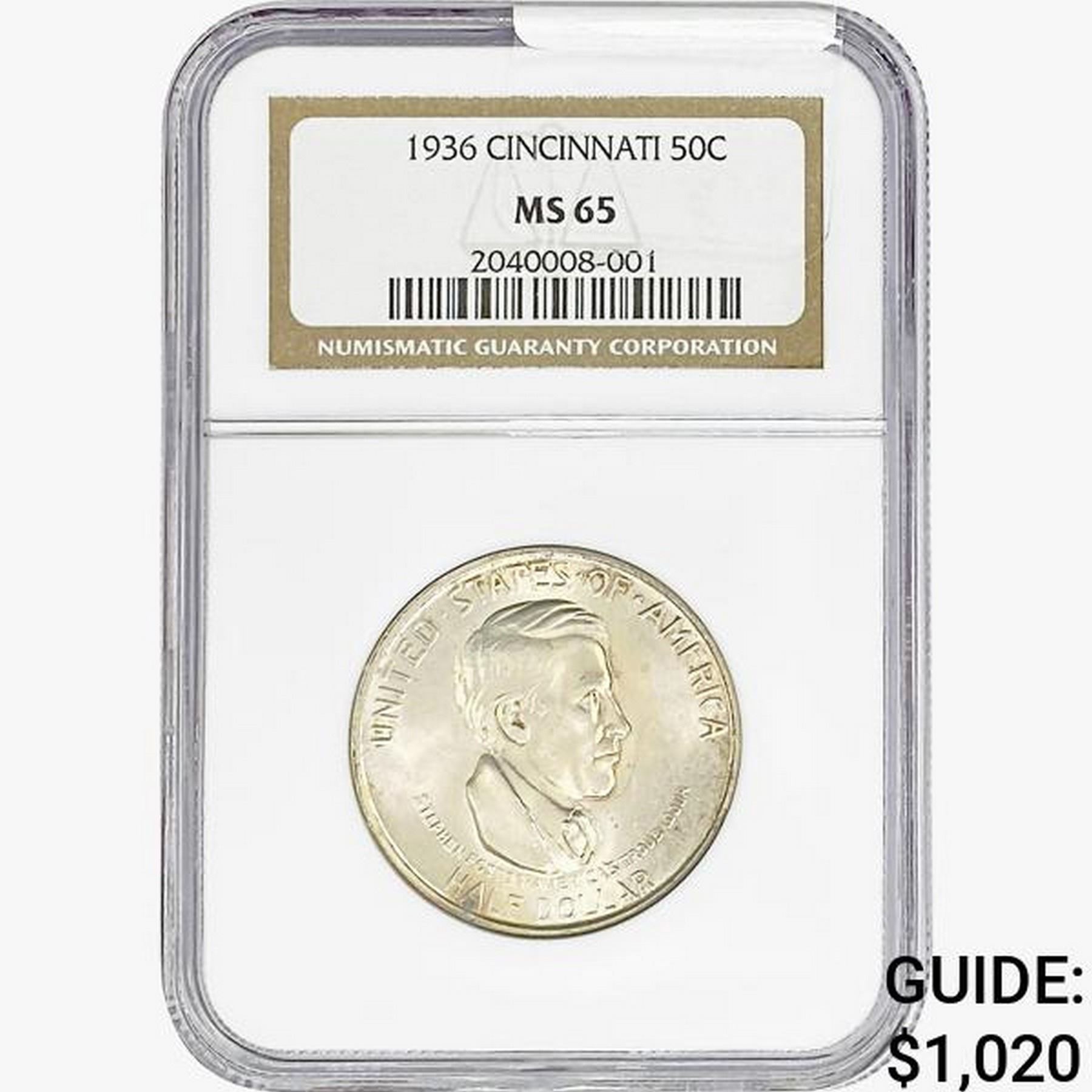 1936 Cincinatti Half Dollar NGC MS65