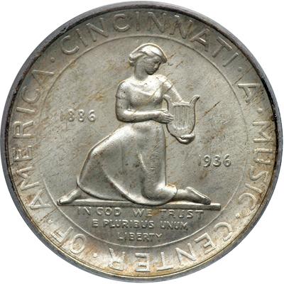 1936 Cincinnati Music Center Half Dollar. PCGS graded MS-66. Nice original toning on both sides and again, a satiny Gem for the connoisseur of the Commemorative series. Pop 92; 2 finer in 67 (PCGS # 9283).