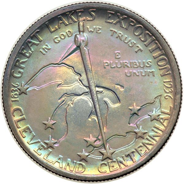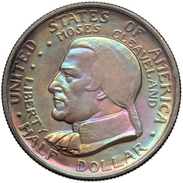 1936 Cleveland Half Dollar. MS-65 Plus. Wonderful rainbow toning on both sides. Possibly retoned but we aren't sure.