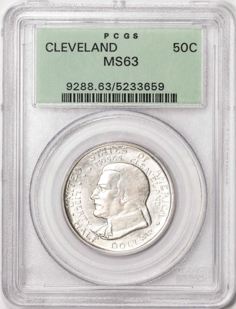 One 1936 Cleveland Centennial Commemorative Half Dollar Coin PCGS MS63 Old Green Holder. PCGS Graded.