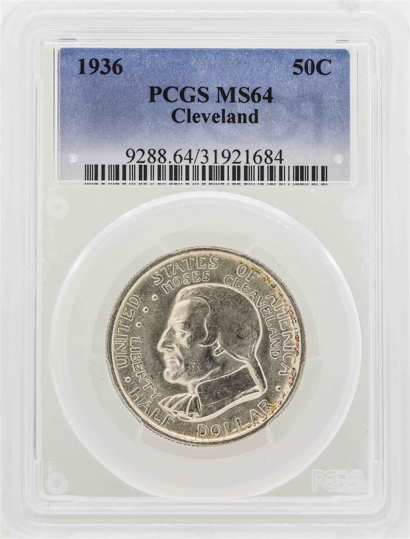 One 1936 Cleveland Centennial Great Lakes Exposition Commemorative Half Dollar Coin PCGS MS64. PCGS Graded.