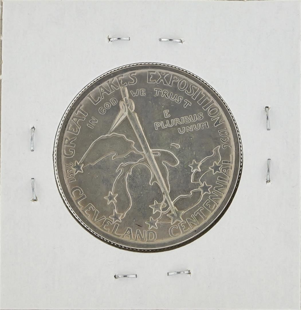 One 1936 Cleveland Centennial Great Lakes Exposition Commemorative Half Dollar Coin.