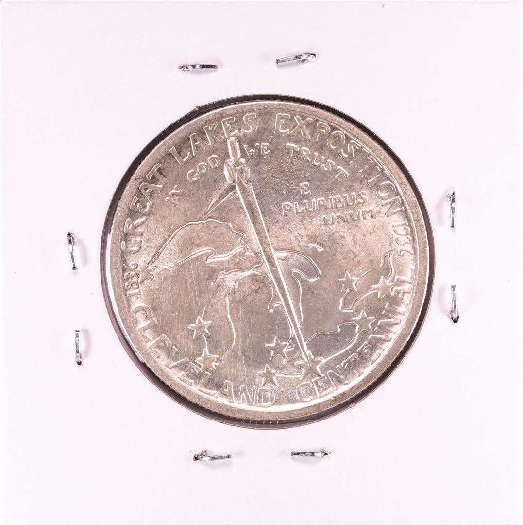 One 1936 Cleveland Centennial Great Lakes Exposition Commemorative Half Dollar Coin.