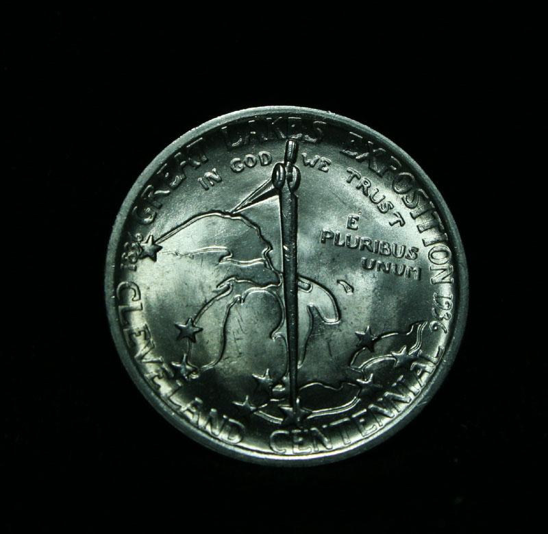 A beautiful bright white example. The High points on a Cleveland Half are the Top of the compass on the Reverse and the Cheekbone of the obverse, Look there when trying to see if there is any wear and whether you are looking at an Unc or an au58. Coin World's Coin Values lists ms65 at $200 and The Wholesale Greysheet lists ms65 at $175. Estimated Value $185