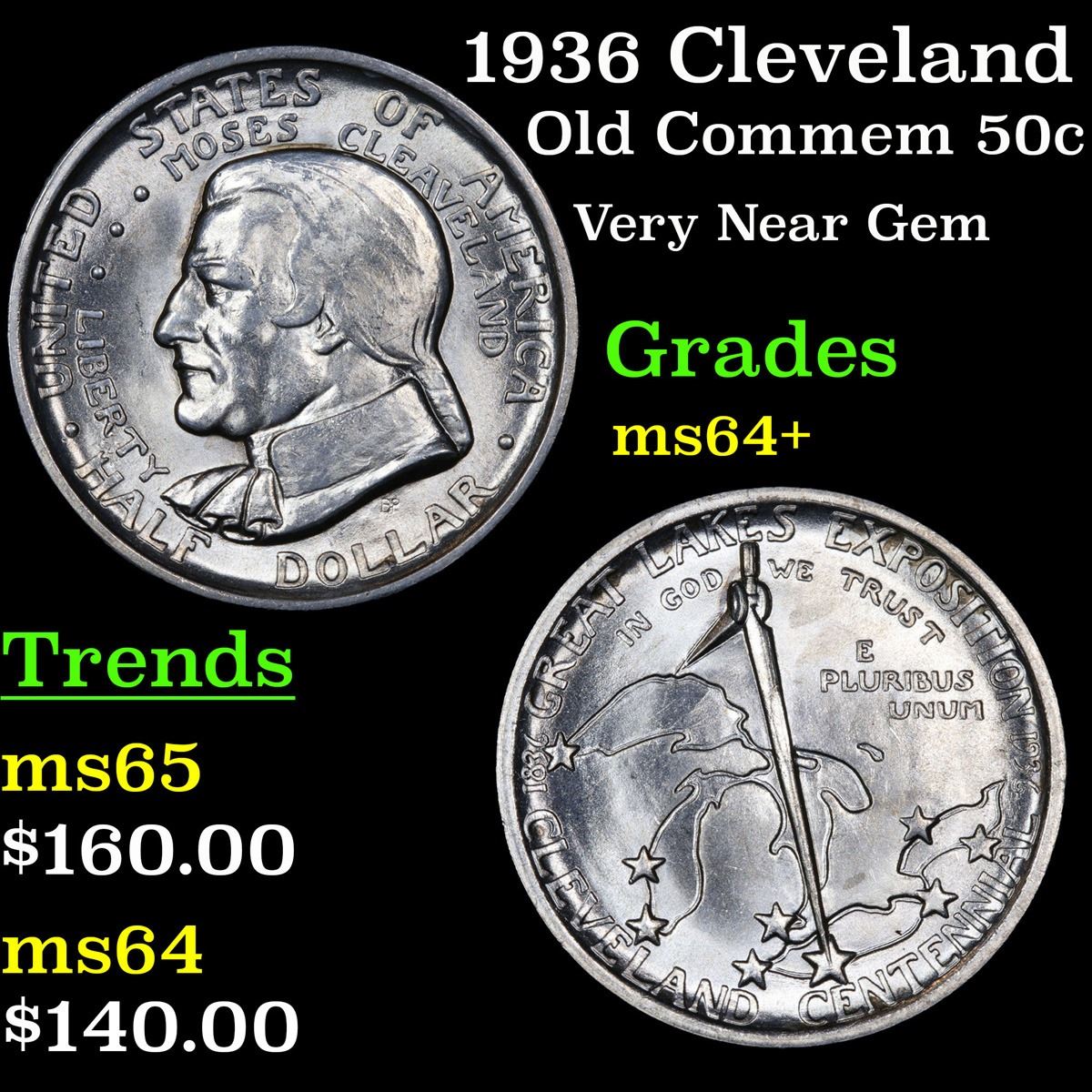 1936 Cleveland . Very Near Gem Old Commem Half Dollar 50c Grades Choice+ Unc. The High points on a Cleveland Half are the Top of the compass on the Reverse and the Cheekbone of the obverse, Look there when trying to see if there is any wear and whether you are looking at an Unc or an au58.