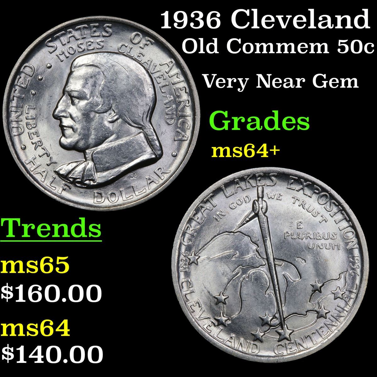1936 Cleveland Old Commem Half Dollar 50c Grades Choice+ Unc. The High points on a Cleveland Half are the Top of the compass on the Reverse and the Cheekbone of the obverse, Look there when trying to see if there is any wear and whether you are looking at an Unc or an au58.