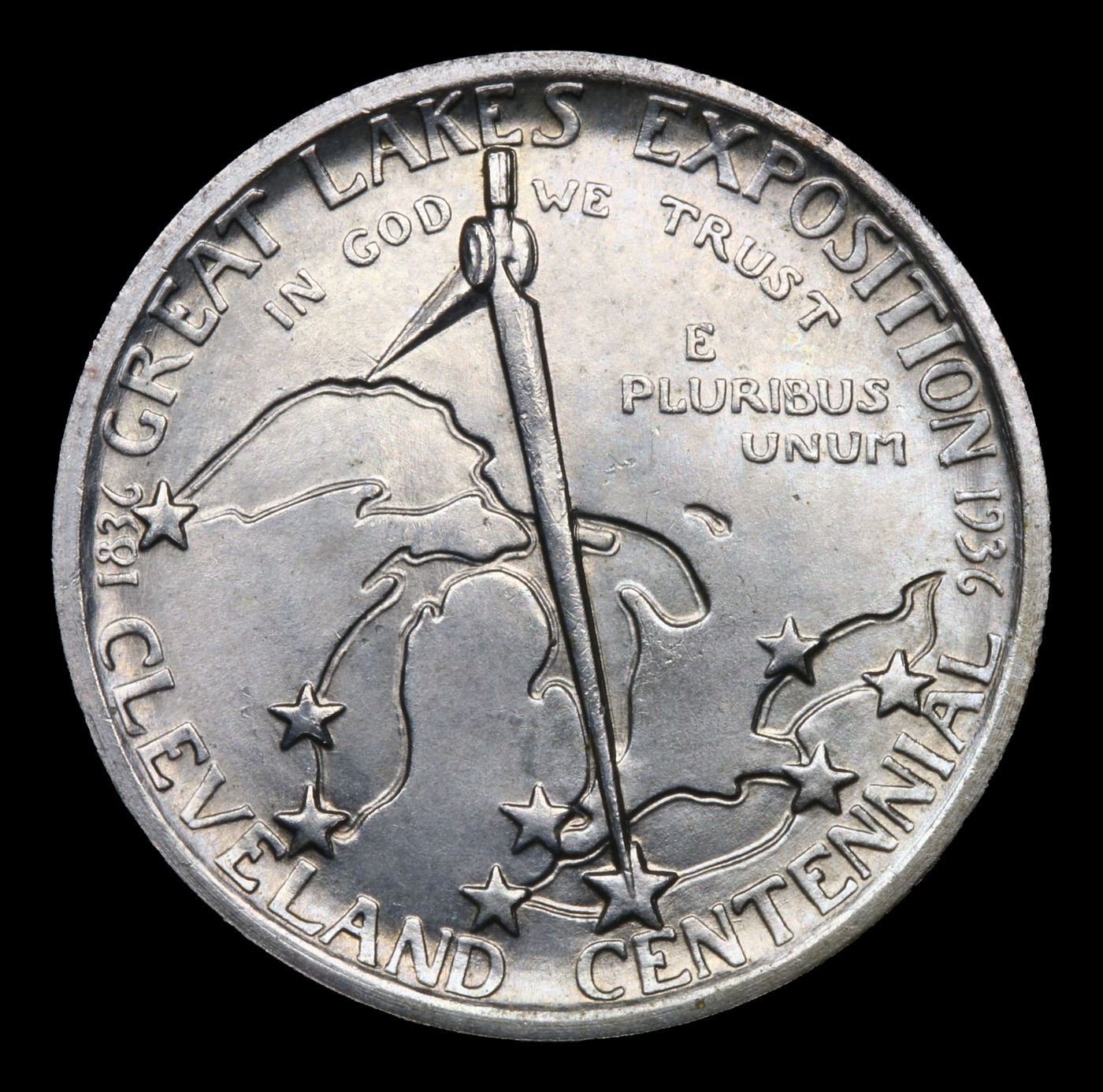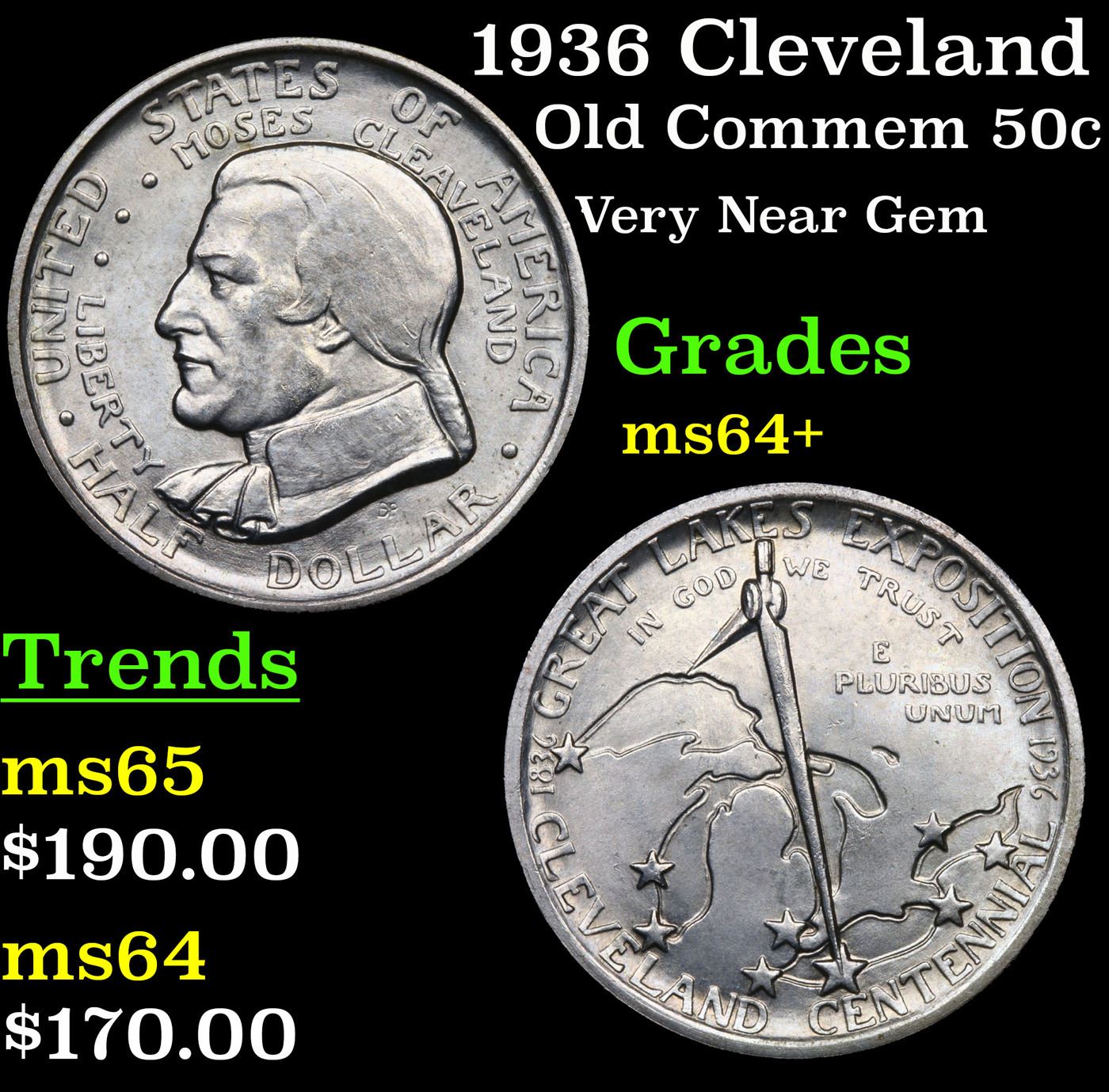 1936 Cleveland Old Commem Half Dollar 50c Grades Choice+ Unc. The High points on a Cleveland Half are the Top of the compass on the Reverse and the Cheekbone of the obverse, Look there when trying to see if there is any wear and whether you are looking at an Unc or an au58.