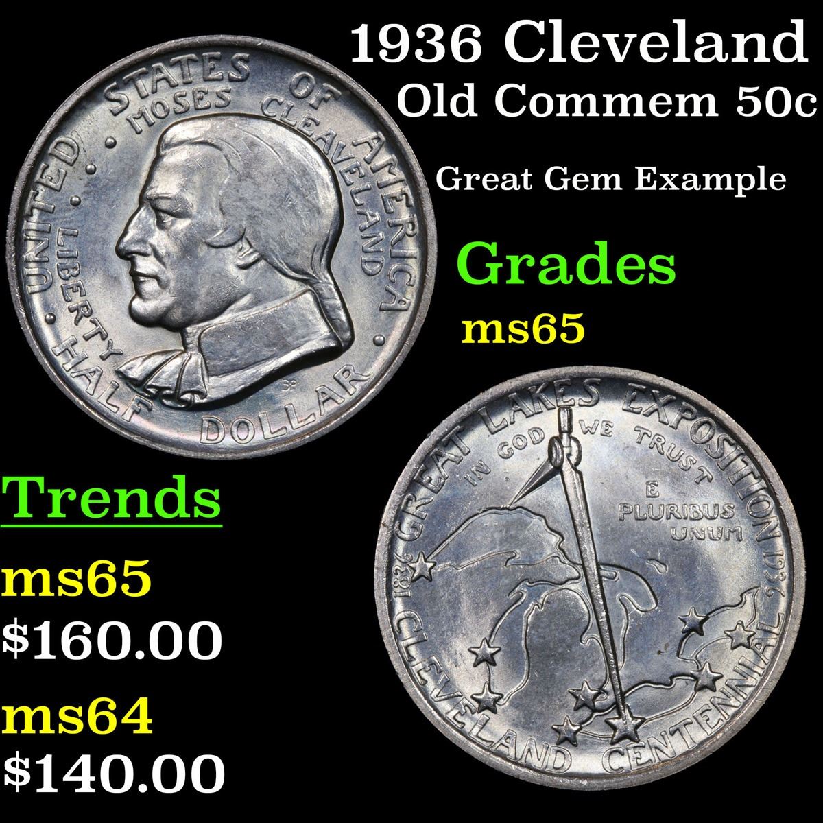 1936 Cleveland Old Commem Half Dollar 50c Grades GEM Unc. The High points on a Cleveland Half are the Top of the compass on the Reverse and the Cheekbone of the obverse, Look there when trying to see if there is any wear and whether you are looking at an Unc or an au58.