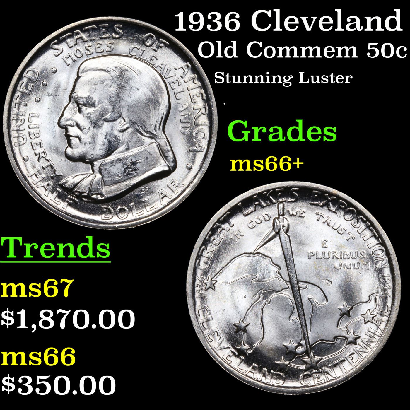 1936 Cleveland Old Commem Half Dollar 50c Grades GEM++ Unc. The High points on a Cleveland Half are the Top of the compass on the Reverse and the Cheekbone of the obverse, Look there when trying to see if there is any wear and whether you are looking at an Unc or an au58.
