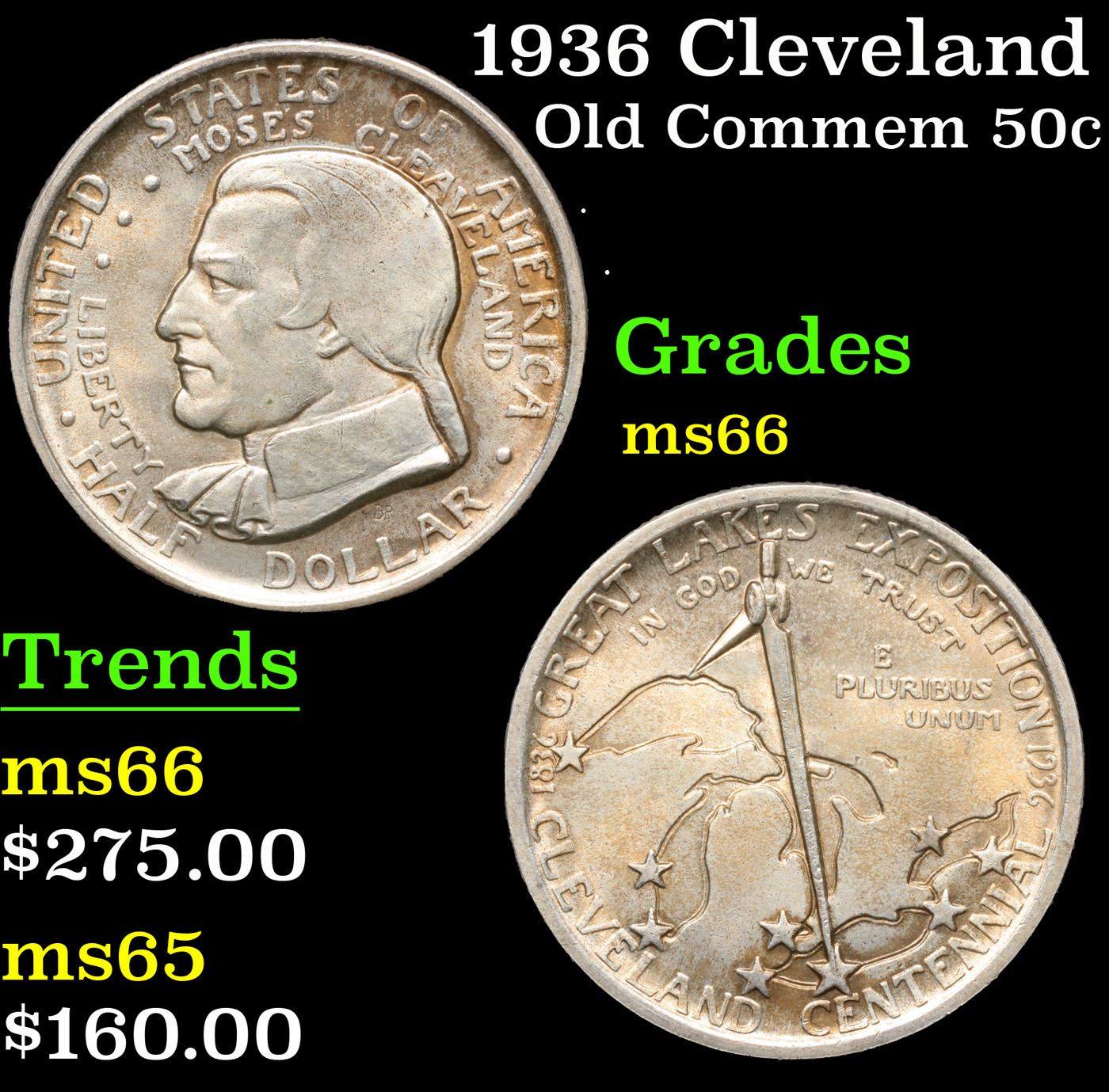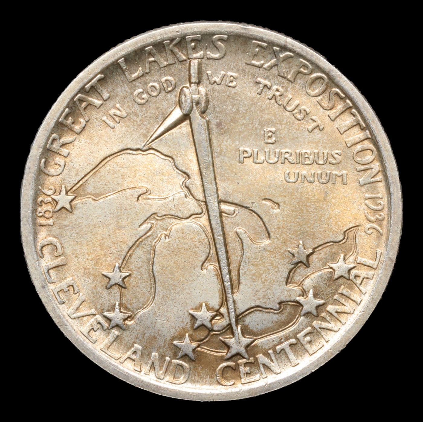 1936 Cleveland Old Commem Half Dollar 50c Grades GEM+ Unc. The High points on a Cleveland Half are the Top of the compass on the Reverse and the Cheekbone of the obverse, Look there when trying to see if there is any wear and whether you are looking at an Unc or an au58.