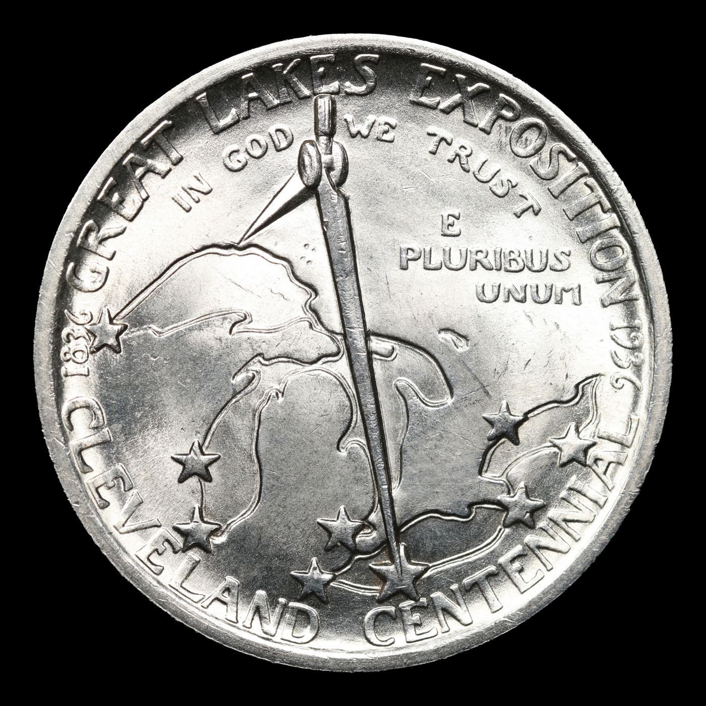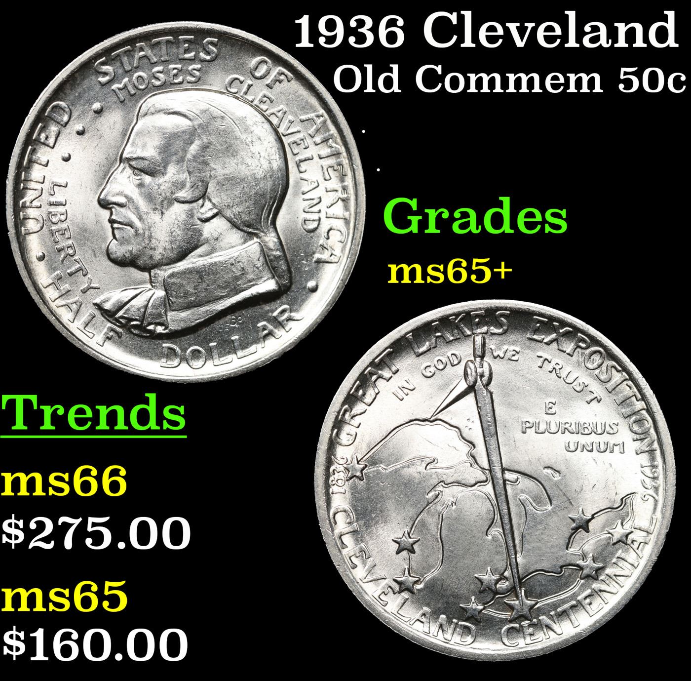 1936 Cleveland Old Commem Half Dollar 50c Grades GEM+ Unc. The High points on a Cleveland Half are the Top of the compass on the Reverse and the Cheekbone of the obverse, Look there when trying to see if there is any wear and whether you are looking at an Unc or an au58.
