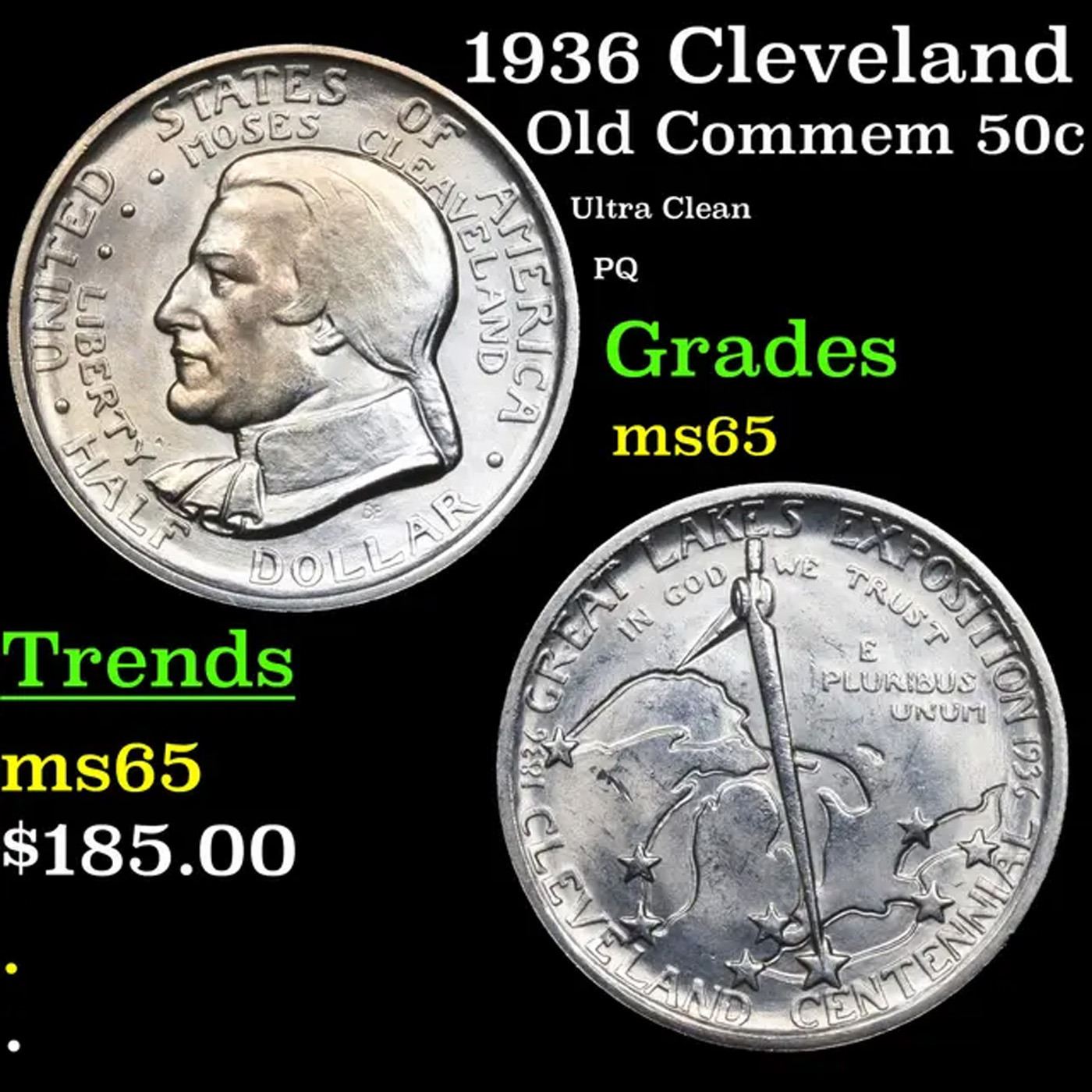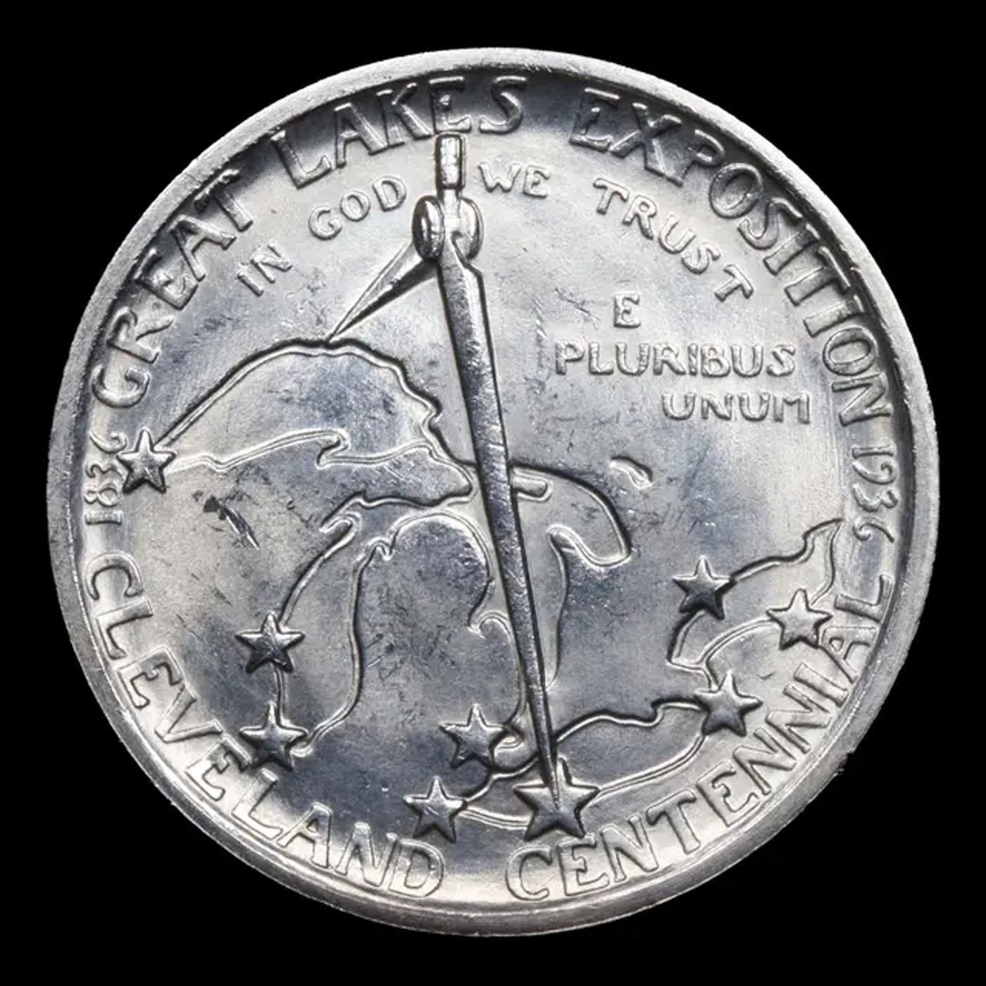 1936 Cleveland Old Commem Half Dollar 50c Grades GEM Unc. The High points on a Cleveland Half are the Top of the compass on the Reverse and the Cheekbone of the obverse, Look there when trying to see if there is any wear and whether you are looking at an Unc or an au58.