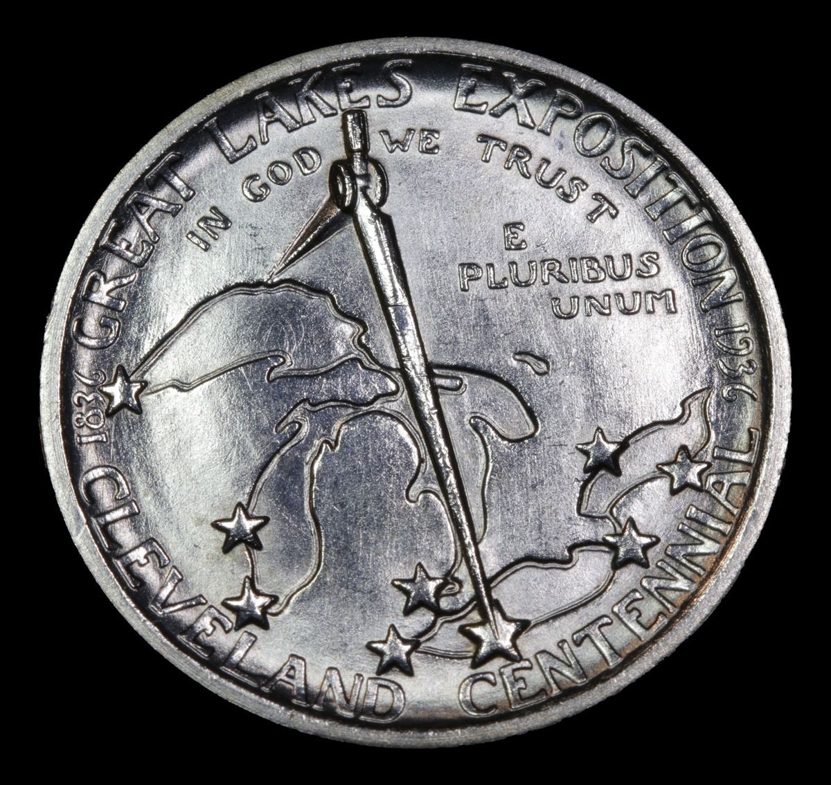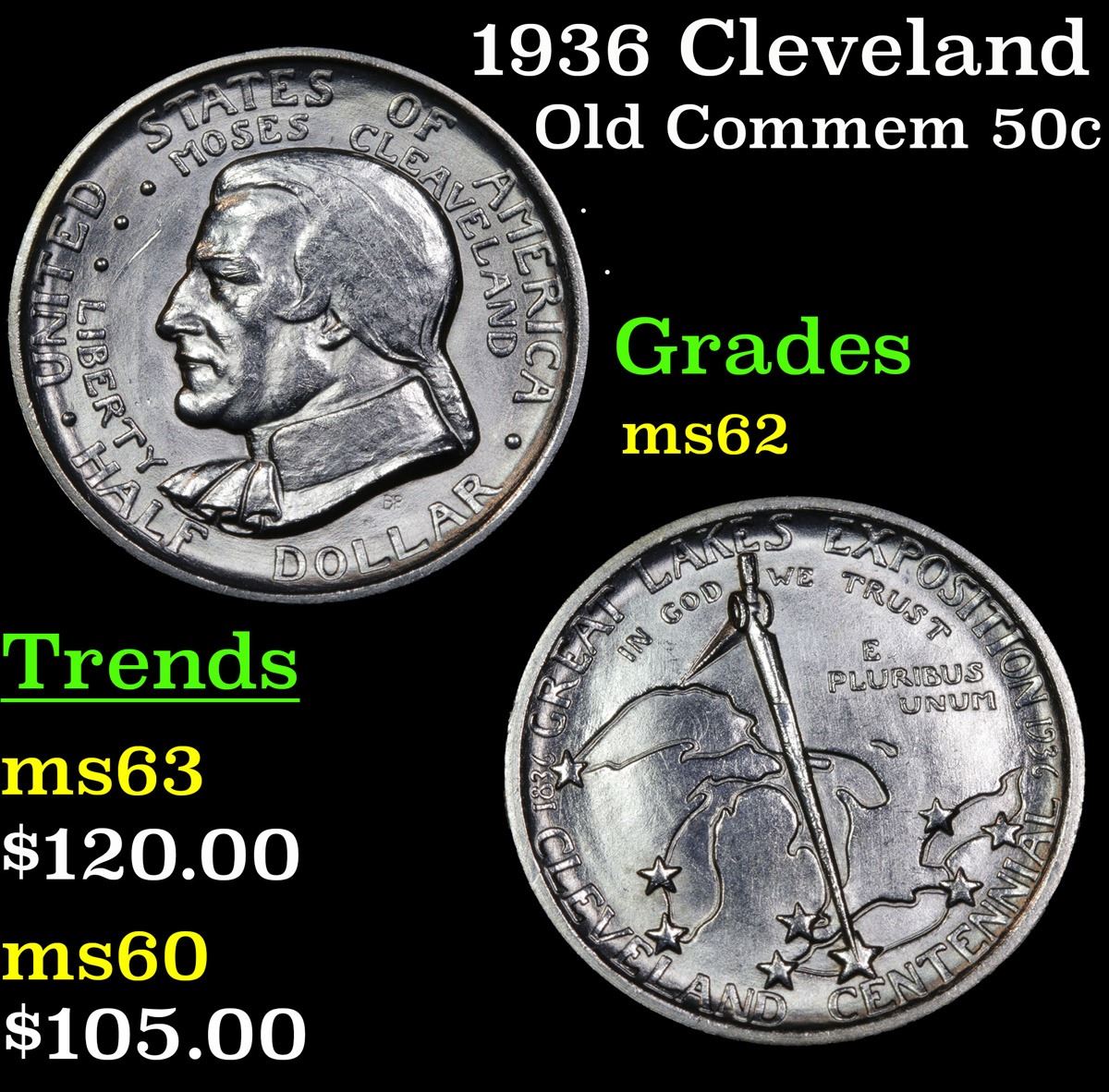 1936 Cleveland . . Old Commem Half Dollar 50c Grades Select Unc. The High points on a Cleveland Half are the Top of the compass on the Reverse and the Cheekbone of the obverse, Look there when trying to see if there is any wear and whether you are looking at an Unc or an au58.