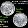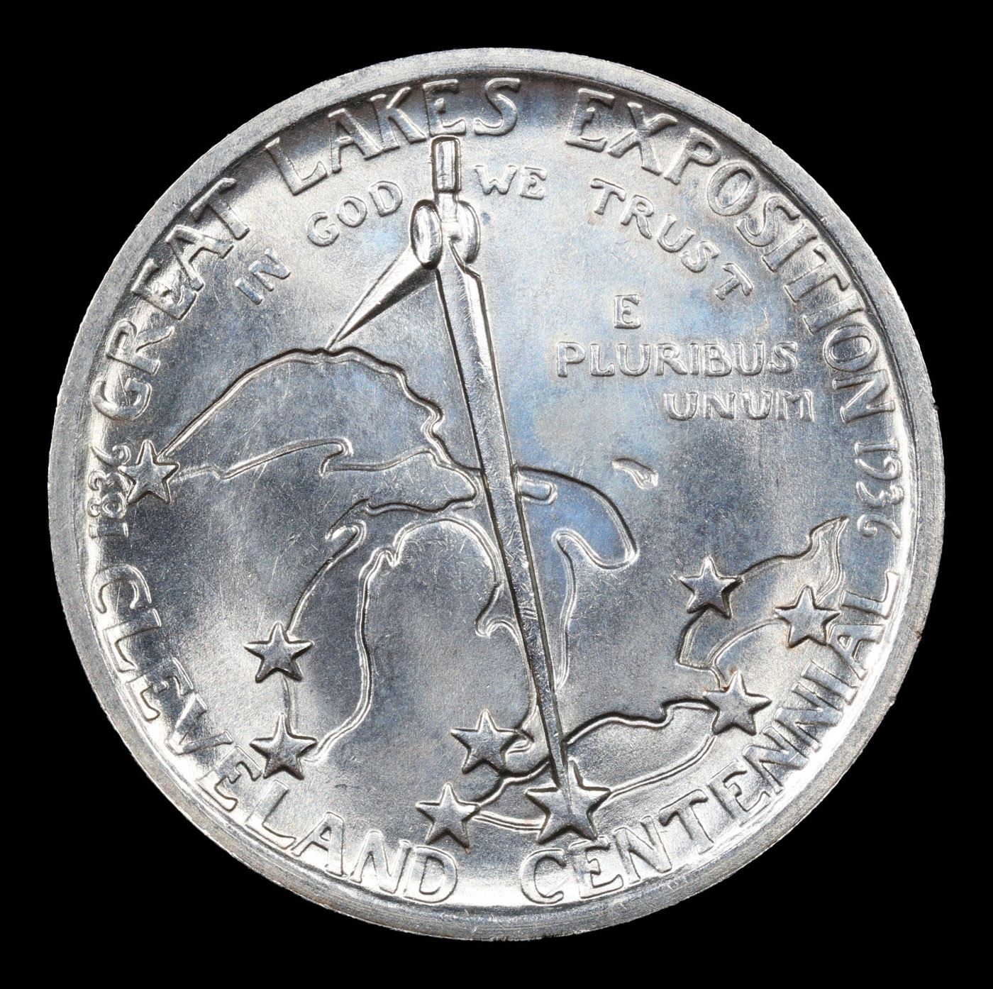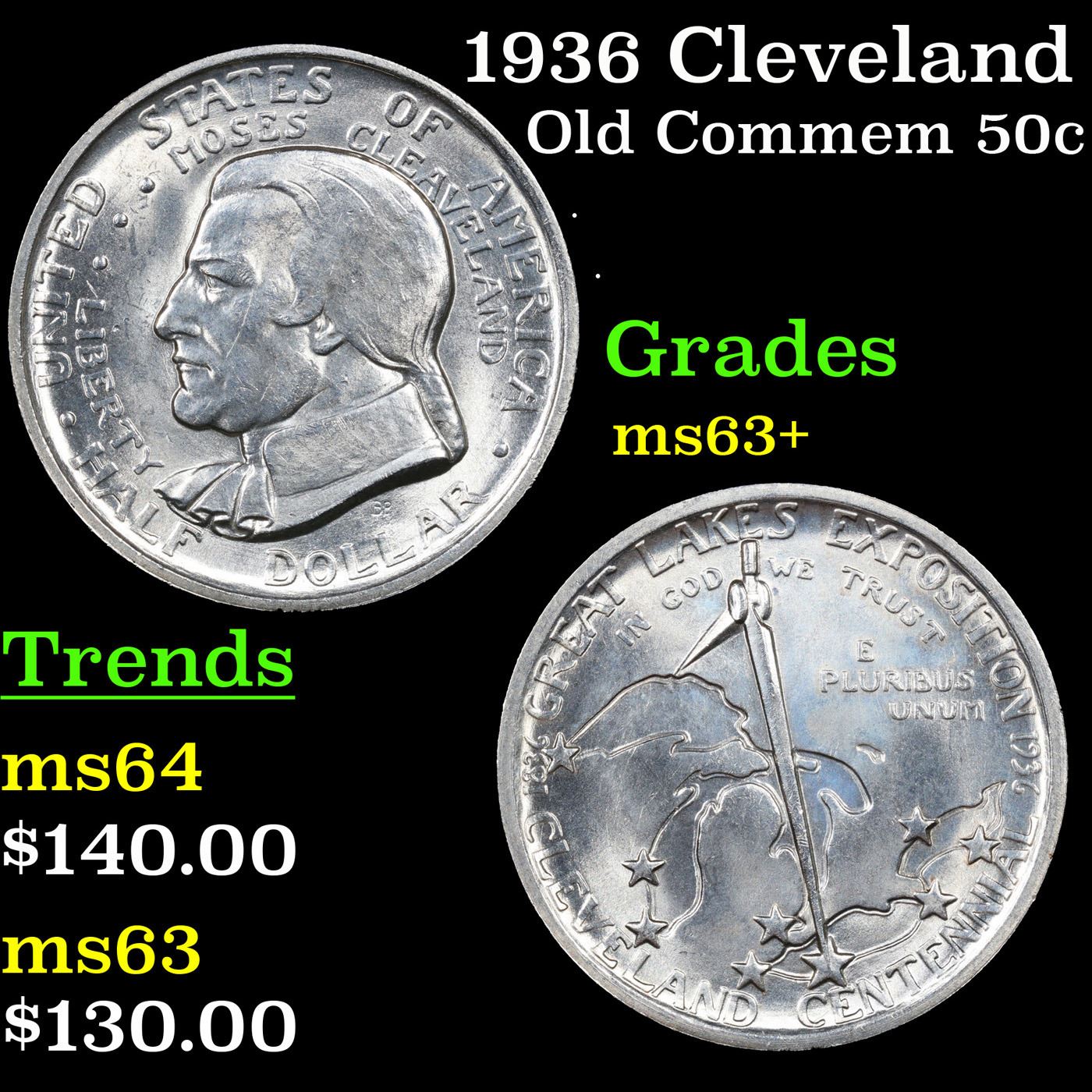 1936 Cleveland Old Commem Half Dollar 50c Grades Select+ Unc. The High points on a Cleveland Half are the Top of the compass on the Reverse and the Cheekbone of the obverse, Look there when trying to see if there is any wear and whether you are looking at an Unc or an au58.