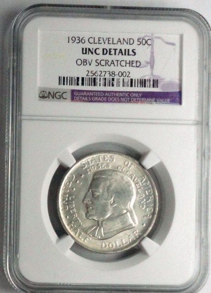 1936 Cleveland half $ NGC UNC scratch