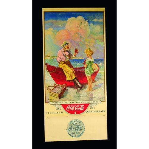 1936 Coca Cola Calendar. 50th anniversary. N.C. Wyeth, Artist. Full Pad with the Metal Band at the top. Near Mint Condition. 12 x 25 inches.