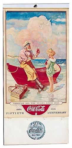 Complete with full pad, cover sheet and metal strip. Very nice overall calendar with only some faint to med mildew spots, a few tiny dark spots, some edge and border darkening and wear. Small color chip in the paper upper left corner border area. Cond. 8.0.