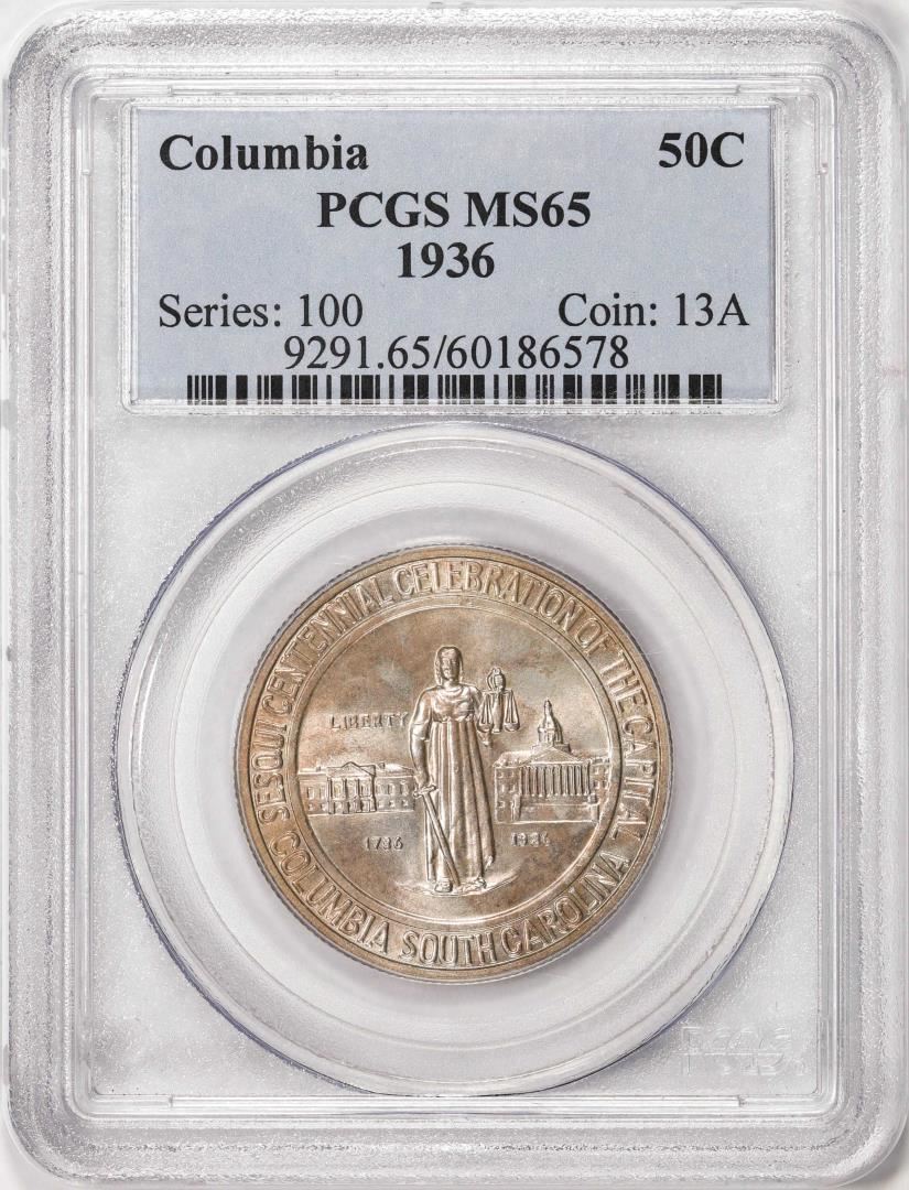 One 1936 Columbia Centennial Half Dollar Coin PCGS MS65. PCGS Graded.
